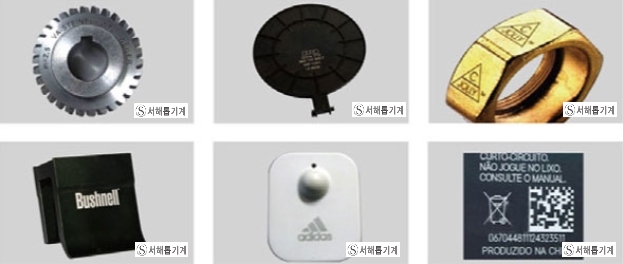 모든 금속 재질과 다종의 부분적 비금속 재질에 마킹이 가능하다.